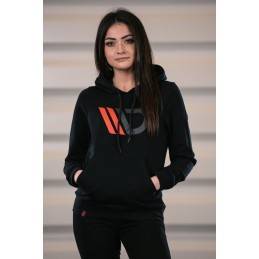 This hoodie dedicated to women is produced from high-quality fabrics. These are cotton (90%) and polyester (10%) and they are the exact reason why this clothing article is so comfortable, nice to touch, and so convenient in everyday use. The black hoodie is a standard component that should be included in woman?s wardrobe as it is well-suited to by worn all year round, no matter the weather. This long-sleeved hoodie is complete with ribbings that give it its elegant minimalistic shape. Its hood is equipped with black drawstrings that allow you to alter its shape and tightness. What?s more, the hoodie has a big kangaroo pocket where your smartphone, keys, or even documents can be kept. This black hoodie with a red-and-gray print in the form of the logo of the producer of aerodynamic parts, Maxton Design, not only ensures your comfort but also gives you a timeless style.