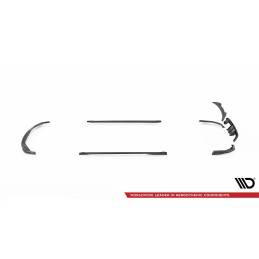 Carbon Set lowers the body. As a result, the airflow space at the front under the car is reduced by 2 centimeters. All elements are equipped with mounting holes. These holes allow you to avoid interfering with the structure of the element and therefore do not reduce its strength.